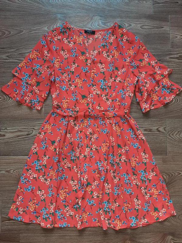 Очень красивое платье в цветочки.Ткань не просвечивается.Есть пояс.Замка нет.На рукавах воланы,низ расклешенный.На худенькую девушку xs-s.Был р.14,ушивала на себя.Ткань приятная к телу.