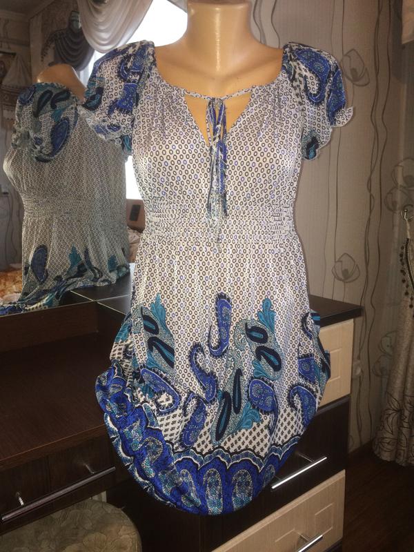 Летнее платье отличного качества!Подчеркнет все прелести фигуры и скроет недостатки . Ткань отлично тянется,легко стирается,не мнется. Размер универсал (от М до XXXL).