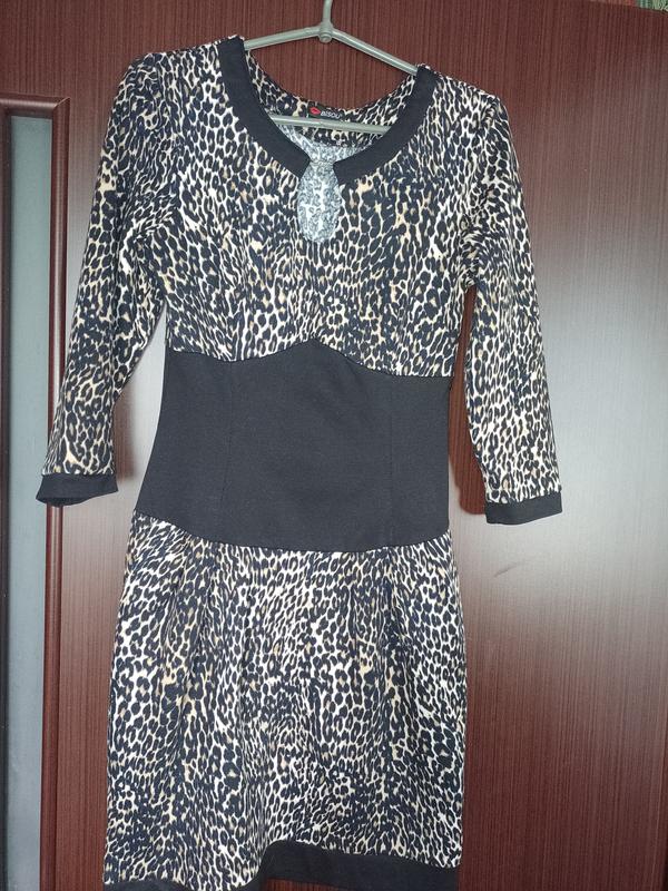 Плаття леопардове приталене з розрізом в районі декольте. Довжина 90 см, плечі 40 см, ПБ 50 см ( +3 см), ПГ 45 см ( +- 2 см), ПТ 34 см