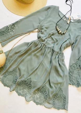 Красивое мятное платье с кружевом, нежное и романтическое, выглядит супер, вещь новая,раз мер s