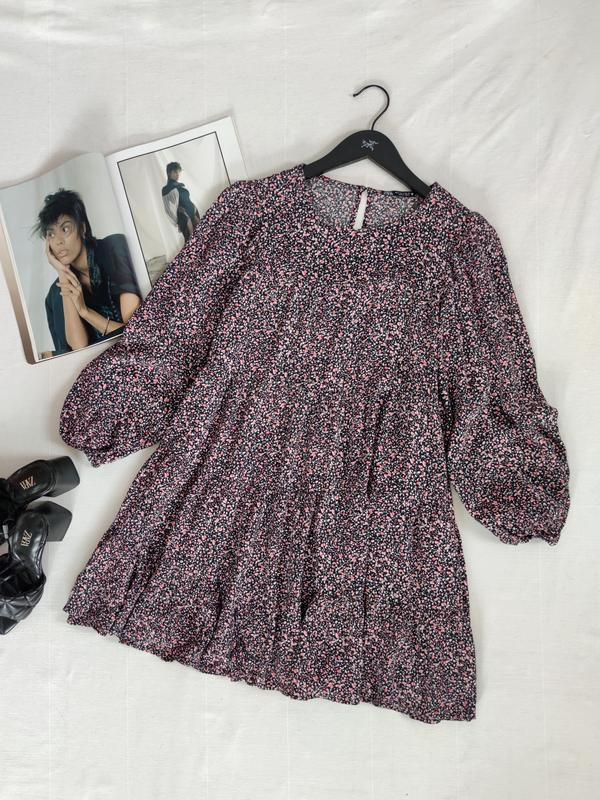 🌿ярусна сукня з квітковим принтом від Zara, тканина не просвічує Розмір:S Заміри:ПО грудей 50 см, довжина 80 см, довжина рукава 58 см Склад: віскоза