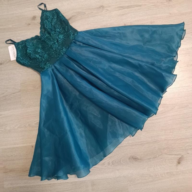 Нова святкова сукня з мереживною вишивкою на бретельках з пишною юбкою