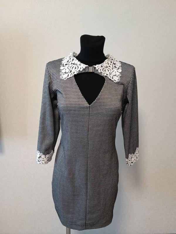дизайнерська сукня від Veronica Poliit з ніжним мереживом на комірчику та манжетах, ідеально для повсякденної носки та будь-якої урочистої події, приталене