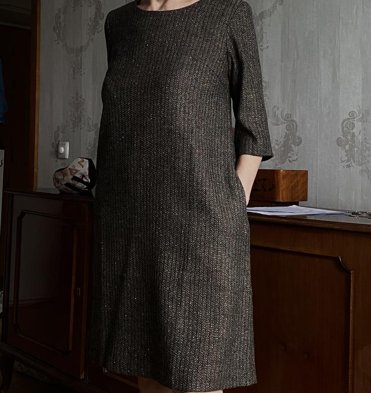 Шикарне шерстяне плаття-сарафан, на застібці. Від бренду N&M, є кишені, рукав три четверті, розмір s, але також сяде на m. Тканина плотна, добре підійде на прохолодну погоду. Ширина в грудях 46см, ширина низу 63 см, довжина 92 см, довжина рукава 36 см.