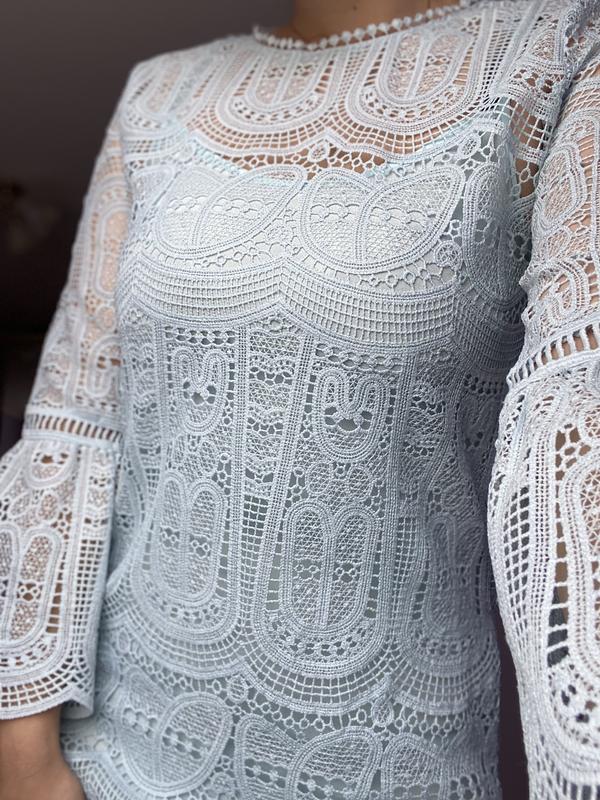 Блакитне плаття від reserved В ідеальній якості, на бірці вказаний розмір 38 Більш детальні заміри: Довжина по спинці 89 см Довжина рукава 53 см ПОГ 45 см ПОТ 46 см ПОБ 51 см