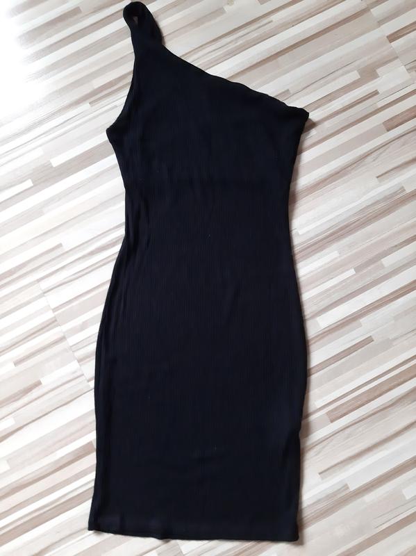 Мвленьке чорне плаття у рубчик (на одне плече). Ог-34(тягнеться) довж.83