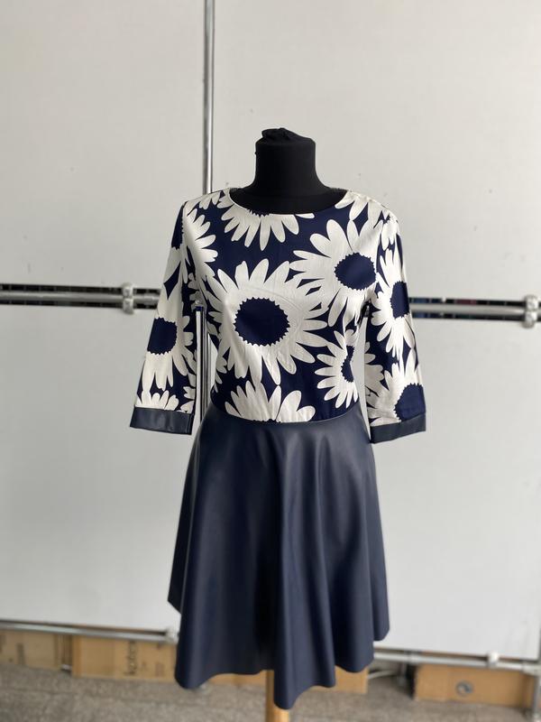 Плаття з еко шкірою в соняшники сукня