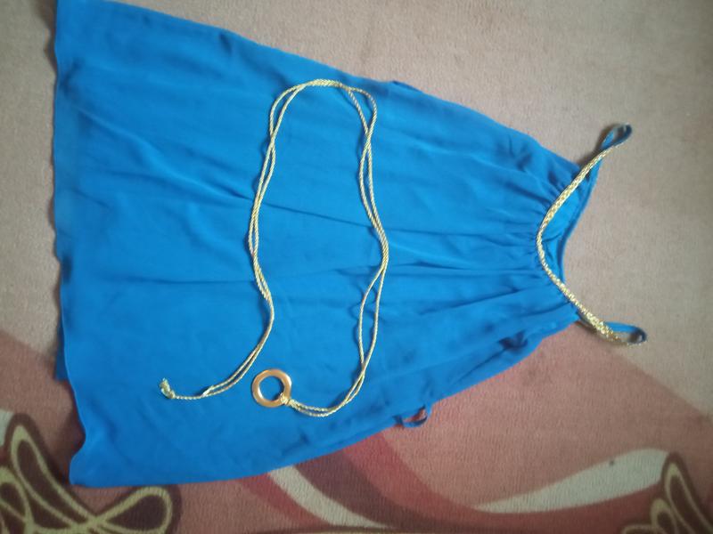 Шифонова сукня гарного синього кольору. З поясом. На підкладці