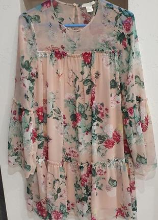 Ніжна сукня, яка приховає недоліки і підійде на будь-яку святкову подію. Розмір XS, але підходить на S. Внизу є тоненька підкладка. Рукави пошиті у формі воланів. Можна носити з ремінцем