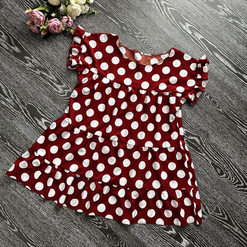 розмір: м/l тканина: поліестер колір: бордовий, білий горох довжина: 80 під руками: 57 легка і зручна, вільного крою, ідеальний стан, жодного дефекту.