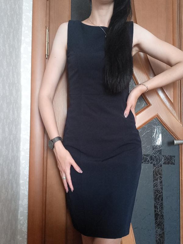 Сукня по силуету підкреслить фігуру. Має якісну підкладку, на спині прихований замочок. Позаду розріз. Ідеальний діловий стиль. Колір глибокий синій, майже до чорного. Для завершення образу необхідні тільки деталі, типу аксесуарів. В ідеальному стані.