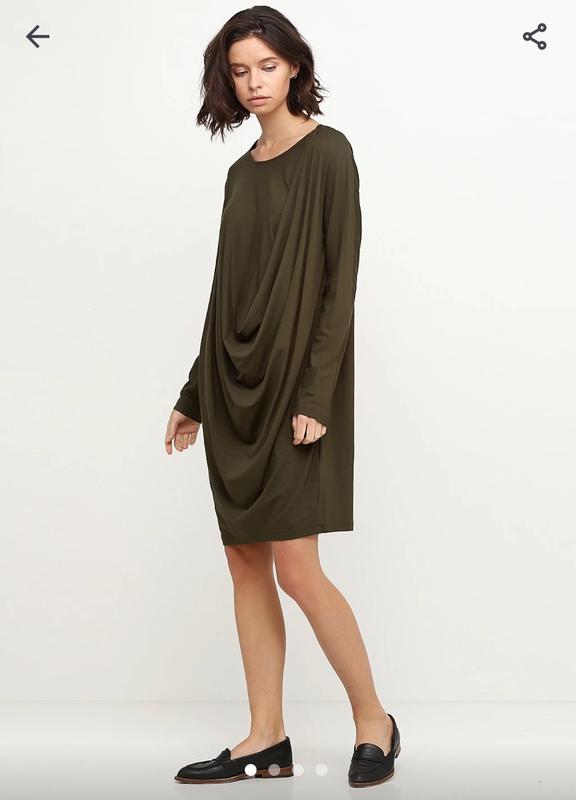 плаття колір хакі приємна до тіла тканина трохи тягнеться довжина 90 см пів'обєм в грудях до 60 см Розмір вказаний S але фасон оверсайз підійде і на L та М