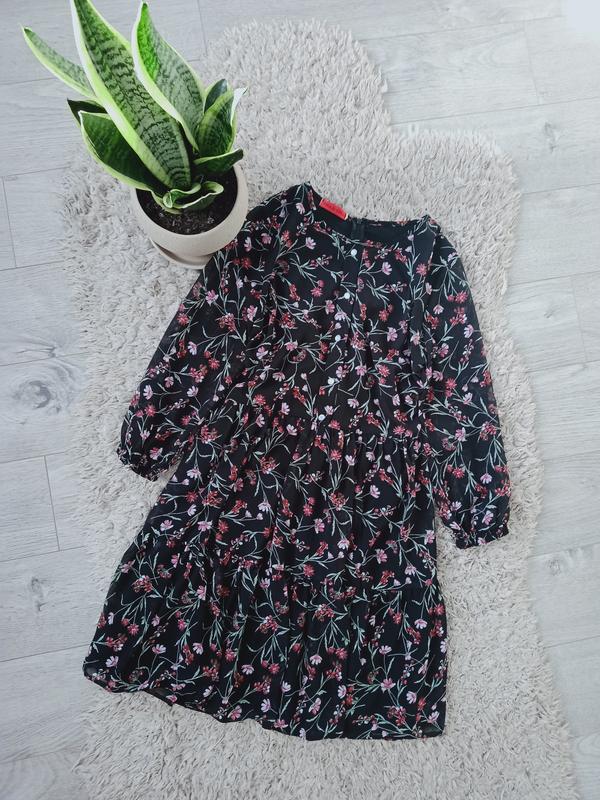 Дуже ніжне шифонове платтячко в квітковий принт. Рукав 3/4. На спинці - замочок. Наявна підкладка. Розмір -s Нове, без бірки. Довжина (по центру спинки) - 85 см ПОГ -42см Рукав (від плечового шва)- 49 см