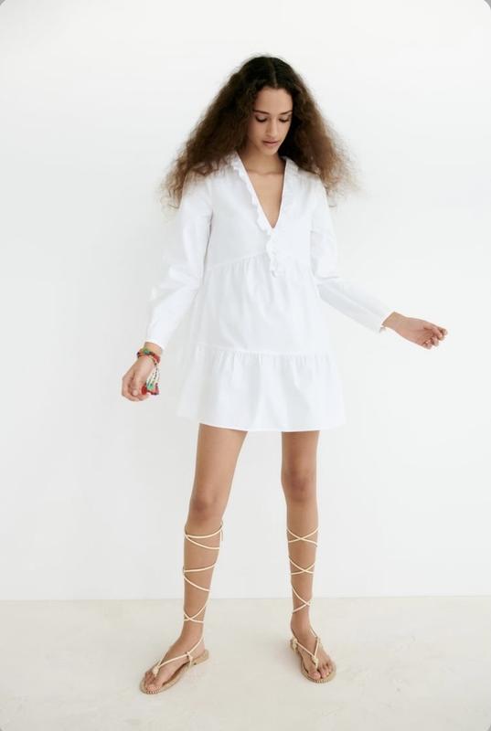 В наличии платье Zara.Размер M. 100%хлопок.Ткань плотная,не светится. Длина 80см,пог 50см,длина рукава 59см,плечи 40см,в талии свободно(50см).