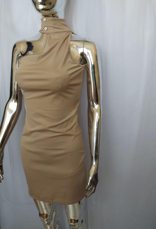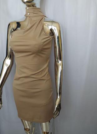 Б/н0156 Платье с чокером на шее Цвет беж Есть скрытая молния Размер 44 уценка