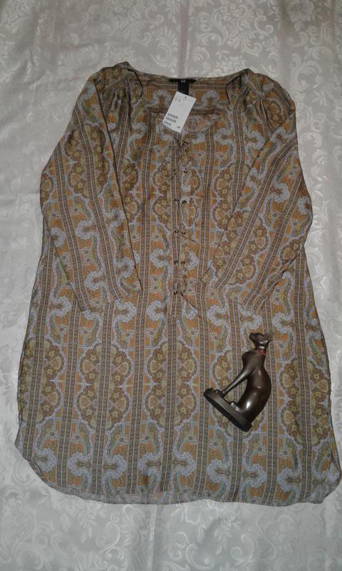 Очень красивая туника на пляж с мокрого шёлка. Впереди на шнуровке. Длинная, длина до колен. По бокам заокругленные вырезы. Лёгкая и приятная на ощупь ткань. Подходит как на XL , так и на 2 ХL.