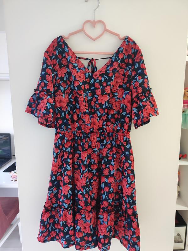 Модне літнє плаття в ідеальному стані, розмір S-M, ззаду спина відкрита на зав'язках. Довжина 75см, в талії резинка 30см тягнеться, груди 40см.