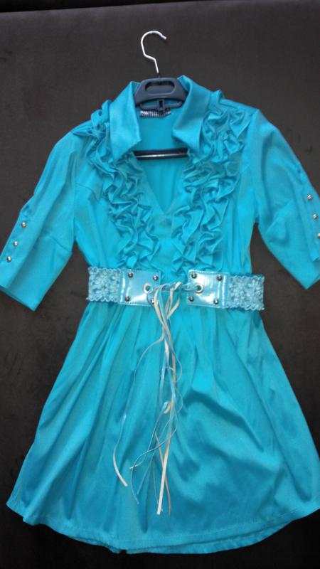 Брендовое платье-туника пр-ва Турция (kosmika) нежно-голубого цвета, длина по спинке 79 см, рукав 3/4, ткань стрейч-хлопок, в комплекте с ажурным пояском, состояние идеальное