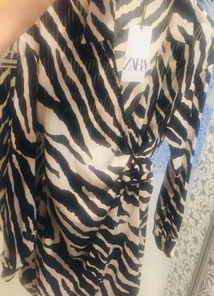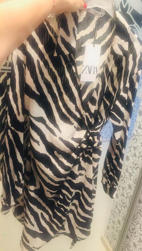 Стильное платье рубашка от Zara, идёт на запах талия регулируется пряжкой. Длина 94см, рукав -56см. Без подкладки, чуть просвечивает. Новое заказывала с сайта.