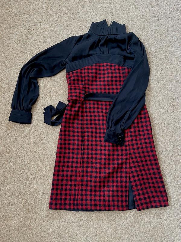 Сукня в клітинку з блузою червона та чорна шерсть та шовк в англійському стилі