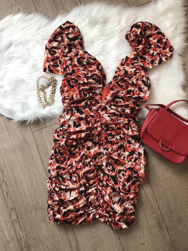 Плаття з цікавим принтом і оригінальними плечима. З вирізом на грудях🔥