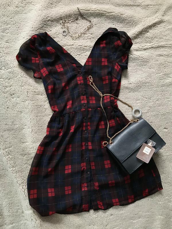 Плаття в клітинку на ґудзиках ZARA. Розмір M, але чудово підійде і для S. Хороша якість, одягала два рази. Гудзики не обманка, розстібаються, відсутній останній ґудзик знизу. Також присутній дефект: на одному з плечиків немає резинки.