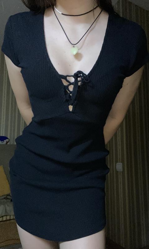 гарне плаття с декольте на зав‘язках на літо класно буде заміри: довжина 81 талія 29 рукав 10 плаття в рубчик , тому добре тягнеться