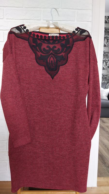 платье на четверень рукав с ажурной вставкой из переди.Длина платья85см,в плечах 50см по бокам имеются карманы