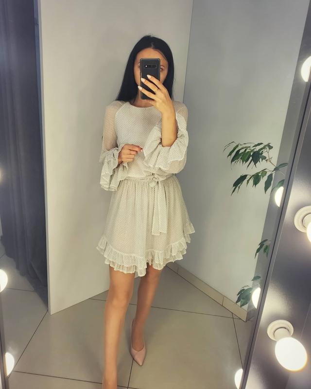 Шифонова сукня міні в горошок з рюшами, з розрізом на спині. Розмір: S, M, L.