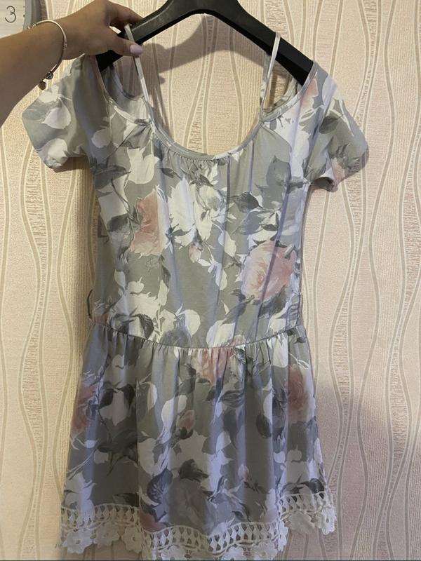 Розмір М-Л Дуже гарна сукня, ніжний колір, приємна легка тканина, на літо чудовий варіант. Довжина від грудей до низу (без брительок) 72 см Під руками груди півобхват 45 см, тканина тягнеться На талії резинка Продаю без поясу!