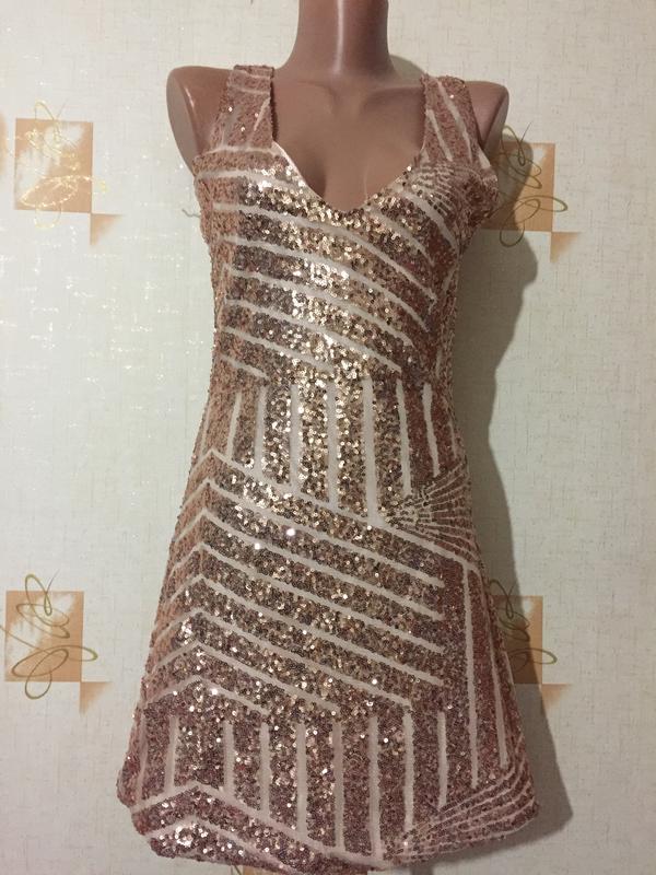 Платье в паетках. На подкладке. На спине молния . Грудь 86см. Талия 78см Длина 83см. Бедра 98см.