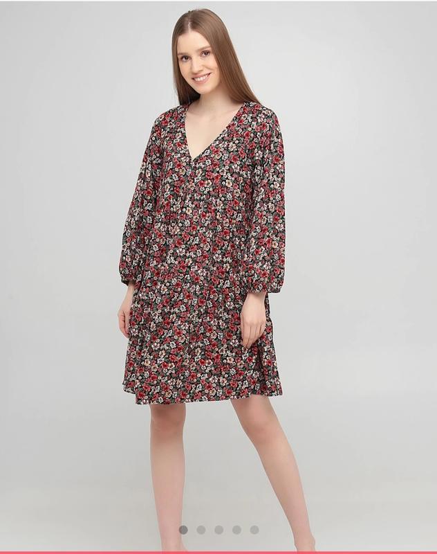 демисезонные платьице цветочный принт полное описание на фото ярусное рукавчик низ резиночка