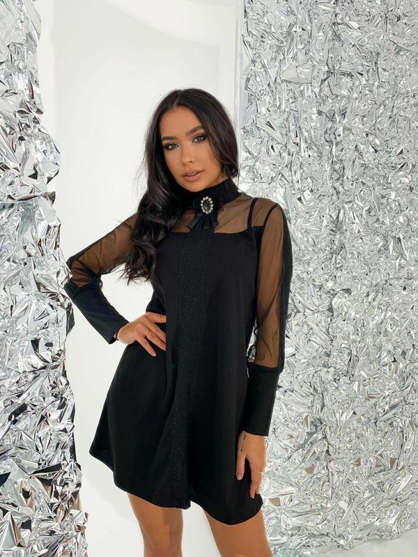 Сукня. Модель 145 У цій сукні ідеально все. Вільний крій, м'яка сітка, вставки люрексу і дуже красива брошка. Легке мерехтіння люрексу надасть твоєму образу загадковості. Ти точно будеш зіркою вечора 🥂 Тканина: креп дайвінг, вставки люрекс, м'яка сіточка Розміри: 42-44, 46-48, 50-52 Колір: чорний Ціна: 680 грн _________________________ Параметри моделі: Зростання 172 Ог 90 см, ОТ 65 см, ОС 93 см