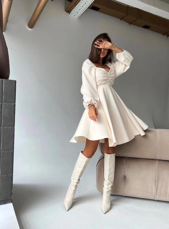 💜Елегантна Жіноча сукня 💜 Модель 518/31 Матеріал :костюмний креп Розмір: S,M,L,XL Колір: молоко, чорний Ця сукня втілення легкості та романтизму Модель з довгими рукавами,застібається на потайну блискавку Рукава та плечики на резинці, у зоні декольте збірка Супер якість Ціна:710 грн