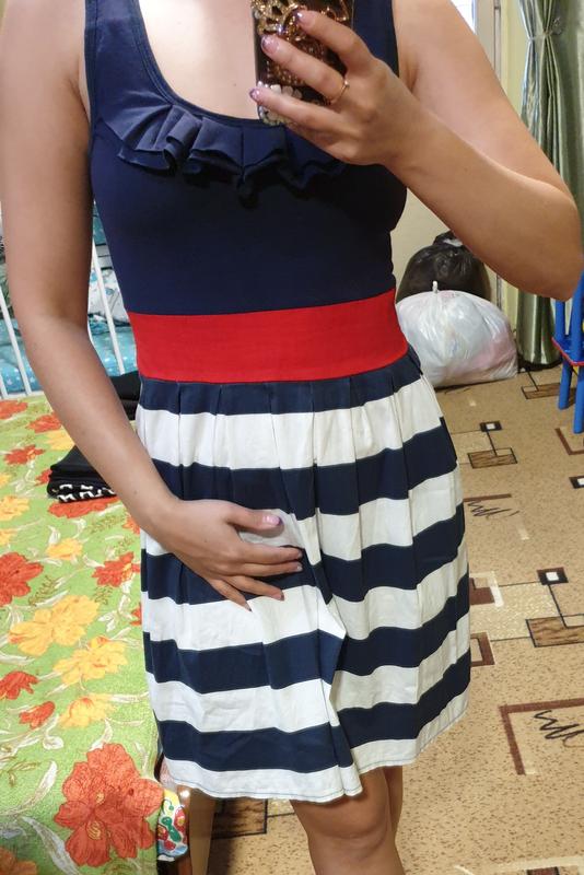 Жіноче літнє плаття в полоску, з червоним ремішком на талії, розмір 44, тканина х\б, в хорошому стані.
