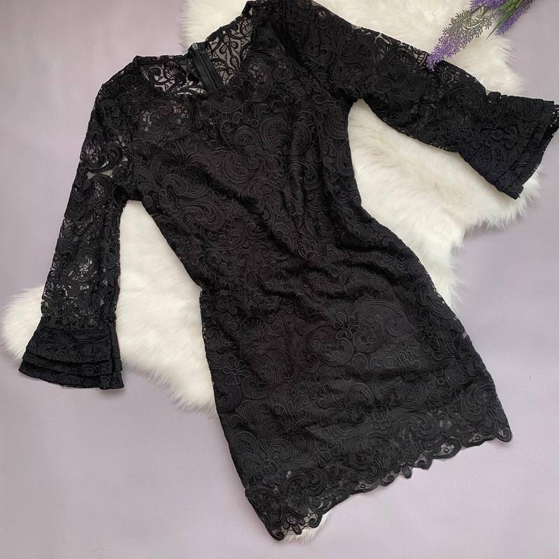 Шикарное платье Состояние: идеальное Платье на подкладке, сзади на молнии. Рукав 3/4 Размер: xs-s Замеры: Длина изд 81 см От плеча до плеча 34 см Рукав 48,5 см ПОГ 37 см ПОТ 34 см ПОБ 39 см
