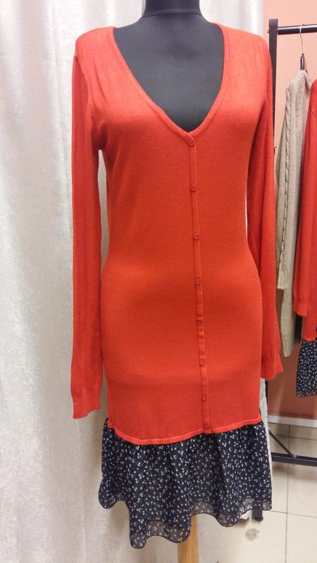 Необычное романтичное женское платье, цвет: ярко-красный, размер: 36, 38 отделка: шифоновые рюши по низу. Производитель: Франция