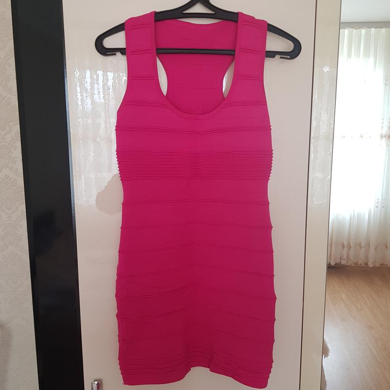 Короткое бандажное платье, цвета фуксия. Размер подойдет на М Одягалось два рази. Замеры нг: 37, тянется до 42 нт: 34, тянется до 43 позволять: 39, тянется до 48 длина 77
