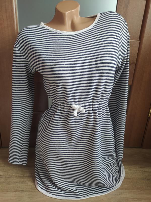 Зручне тепленьке плаття в смужку Гарний стан, натуральна тканина Підійде для розміру м/s Довжина 78 см Напівобхват грудей 46 см Рукава від коміра 66 см