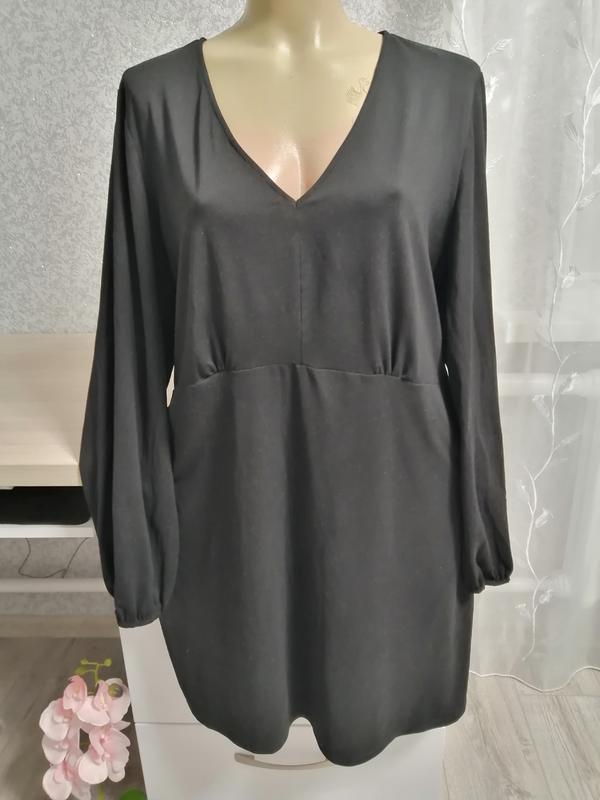 Жіноча чорна сукня, з довгим рукавом в низу на резинці. Розмір 20,48,52.З поліестру та еластану. Маде ін Бангладеш. Гарно тягнеться. Пишіть скину заміри.