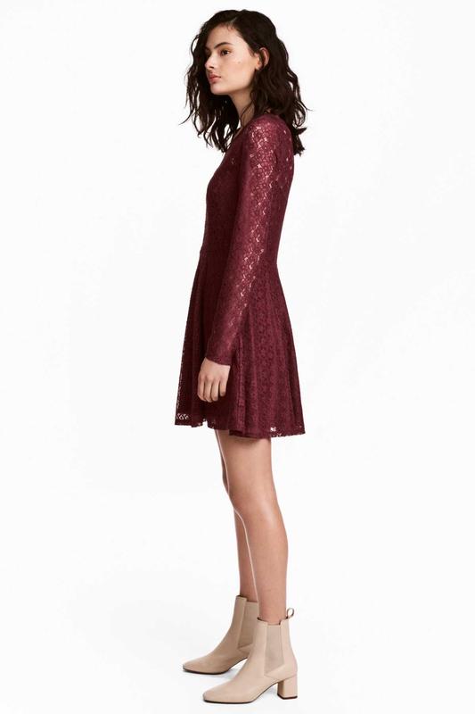 Размер eur 38 (длина 87см,пог от 42 см (тянется)поб 54 см,плечи 36 см. Короткое кружевное платье с длинными кружевными рукавами, швом на талии и расклешенной юбкой. Подкладка из трикотажа.