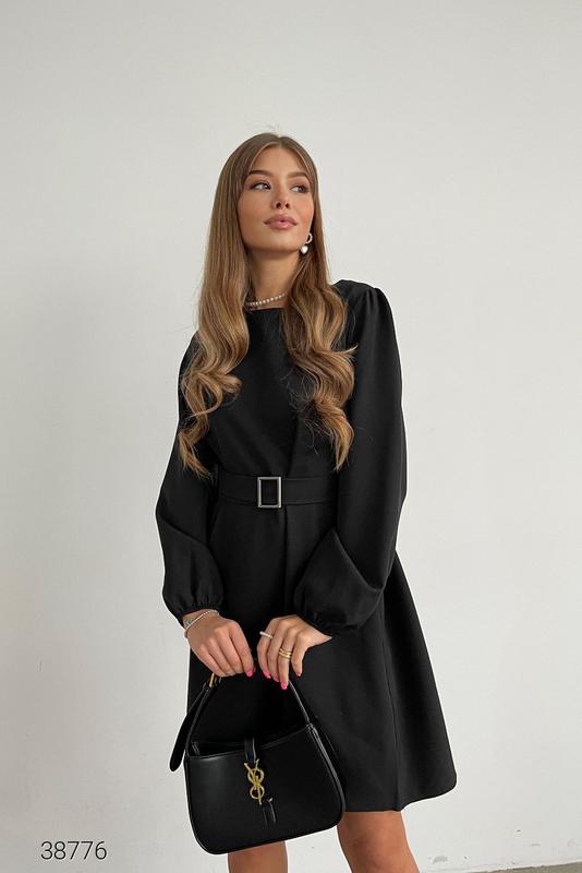 Колір бежевий, чорний. МАТЕРІАЛ: костюмний креп ДОВЖИНА: 88 см ДОВЖИНА РУКАВА (ПО ВНУТРІШНЬОМУ ШВУ): 45 см Сукня А-силуету з якісного костюмного крепу. Круглий виріз, об'ємні рукави з резинкою, що фіксує, ззаду застібка на потаємну блискавку. У комплекті пояс. Орієнтовні виміри готового виробу: 42-44 (ОГ-96); 46-48 (ОГ-102). 01305