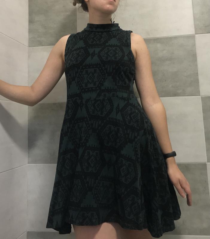 Елегантна зелена сукня з цікавим принтом. Одягалась один раз. Зріст дівчинки на фото 168 см.