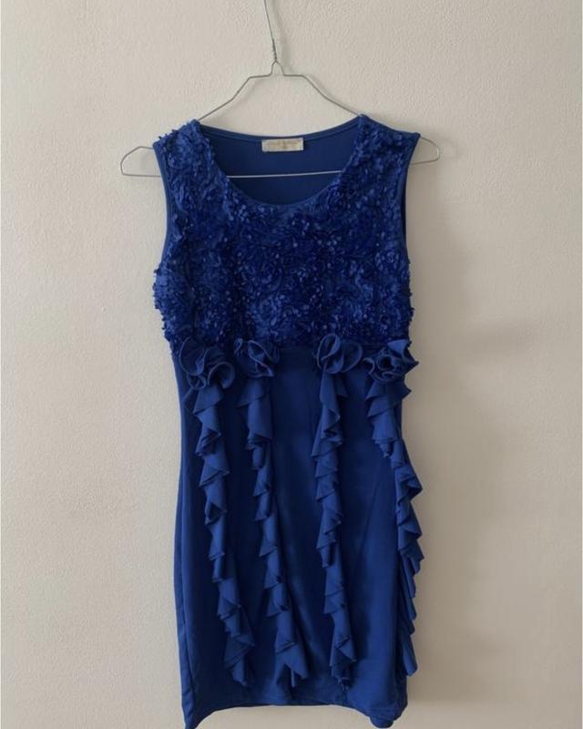 Темно-синя сукня-футляр з рукавичками. На ріст 152-158.