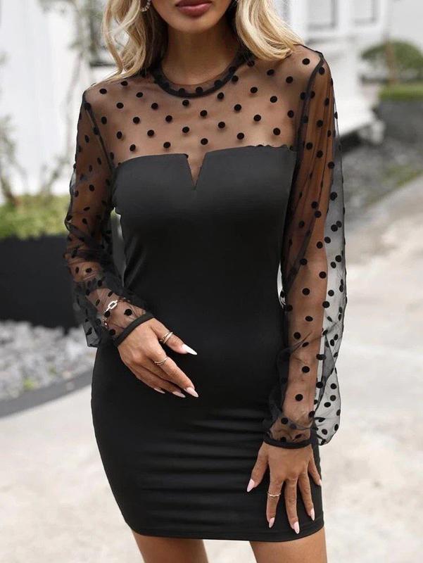 Модель 521 kat Жіноча #сукня Розмірний ряд S,M,L,XL Тканина стрейчевий креп дайвинг,рукава сітка горох Колір чорний Супер якість 💸Ціна 640 грн