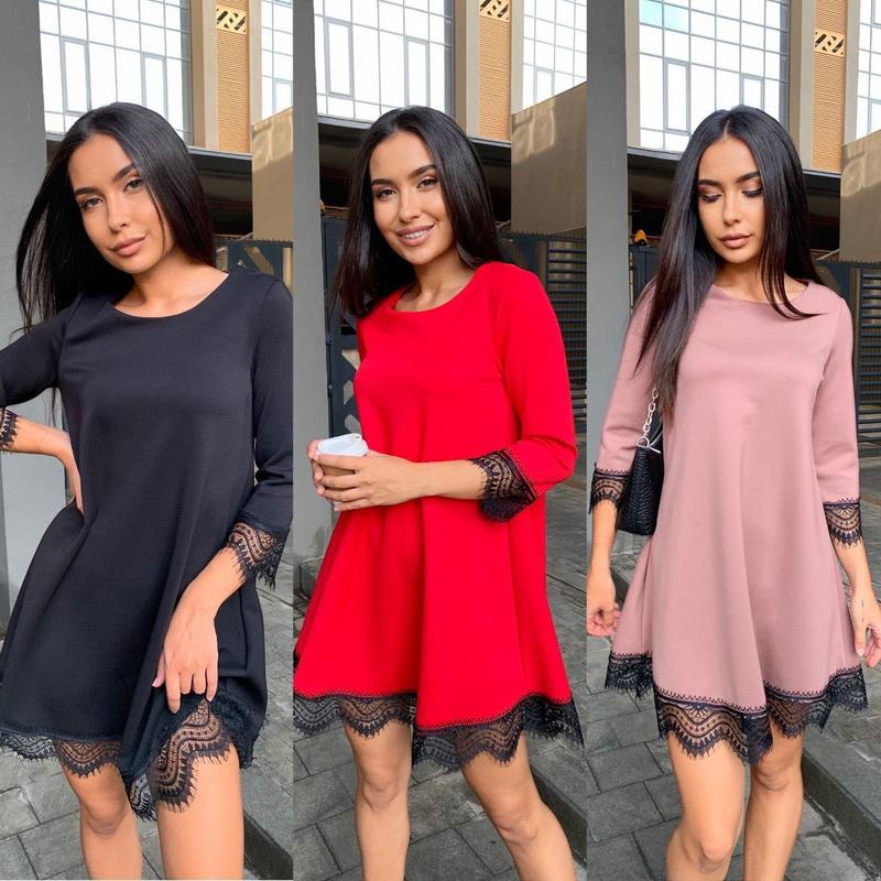 #Сукня Модель 2006/1 mn Тканина джерсі + мереживо Розміри: 42-46, 48-52 Кольори: червоний, мокко, чорний 💸Ціна 705 грн