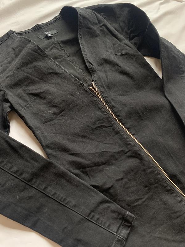 Дуже круте плаття-міні з деніму на замку з декольте (я підлягала сітку, на фото видно, можна і без). Низ «потріпаний», колір деніму темно-сірий, графіт. Ідеально сідає по фігурі, тягнеться. Довжина 80 см Напівобхват грудей 37 см Рукав від плеча 60 см Довжина декольте від верху 28 см.