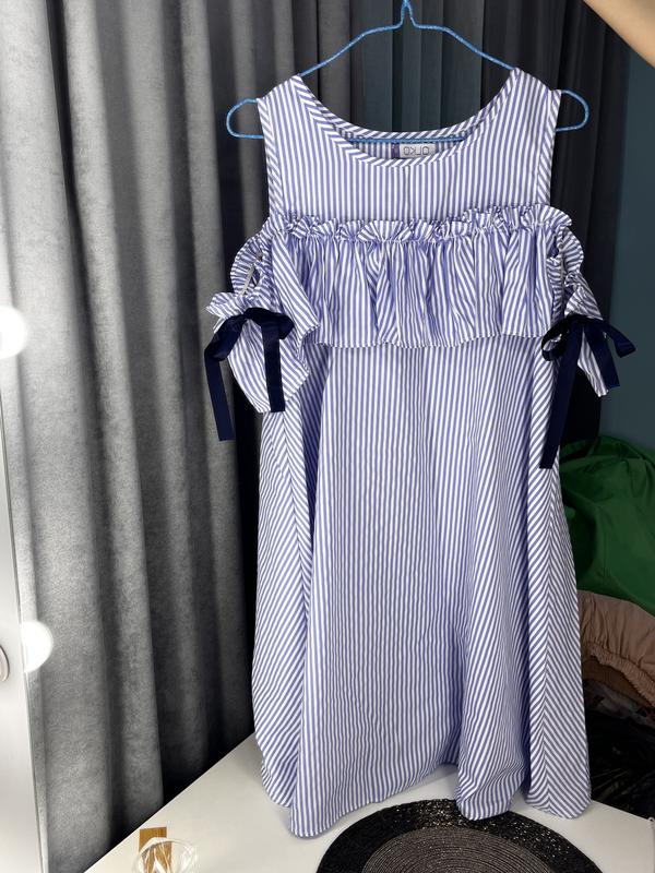 Красивое летнее платье в полоску,красивый рукавчик ,открытые плечики