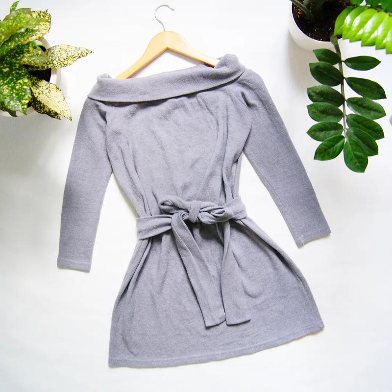 Сукня Розмір S/M ПОГ 46, довжина 77, рукав 48 Коротке, тепле плаття. В таліі на резинці і пояс. М'якеньке. Складу немає. Із дефектів, розійшлось на пояску. Стан добрий