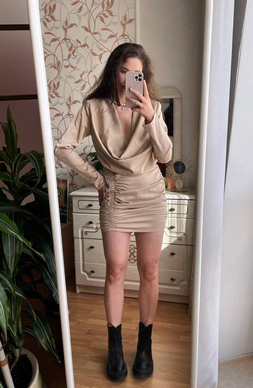 Трендова сукня, з жорсткими плечиками, що робить гарний силует. Бренд:PrettyLittleThing Розмір М, перевагою буде пишна грудь:) Тканина : віскоза Стан : новий, з біркою